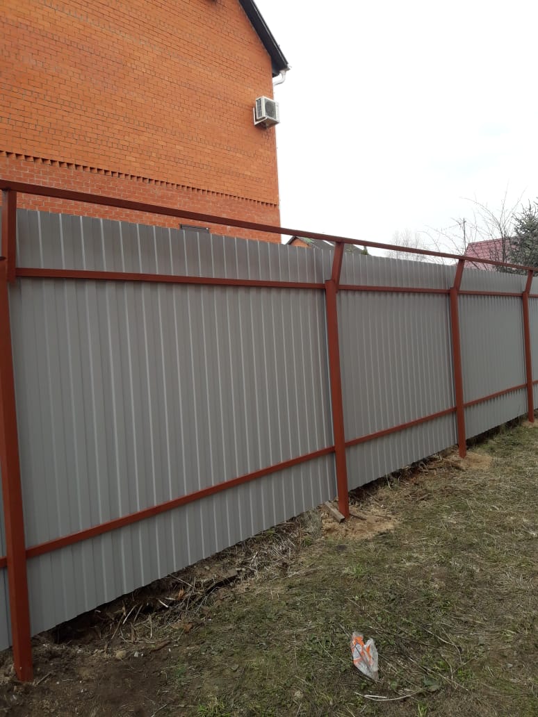 Забор на металлических столбах