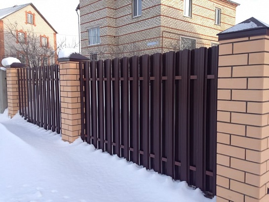 МЕТАЛЛИЧЕСКИЙ ШТАКЕТНИК 90 метров с кирпичными столбами